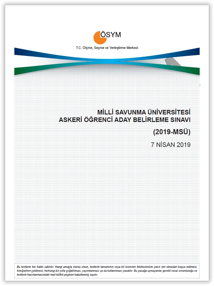 2019 MSÜ 7 Nisan 2019 tarihinde yapılan MSÜ Soru ve Cevaplarını kitapçığı indirerek inceleyebilirsiniz. KİTAPÇIĞI İNDİR MSÜ Sınav Listesine Geri dön Ana Sayfaya dön